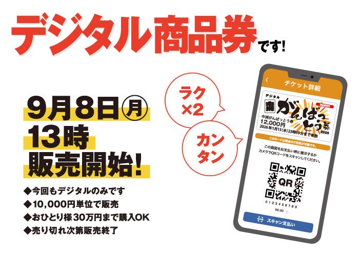 個人消費を活性化させるために、福岡県、福岡市が補助金を交付して発行される、中洲及び周辺エリアでお得に使えるデジタル商品券です。